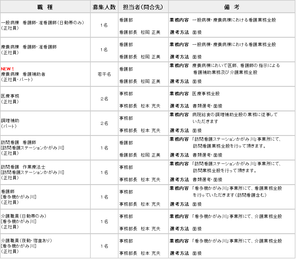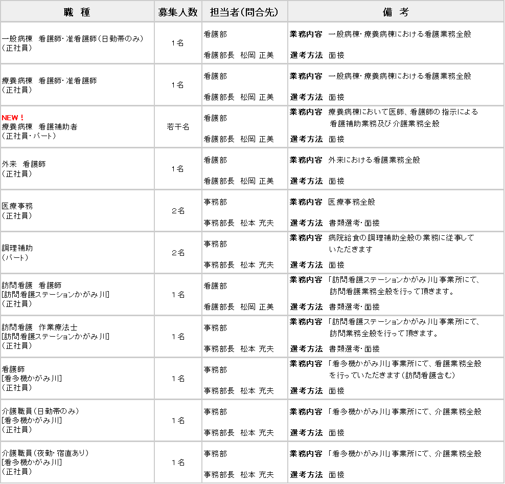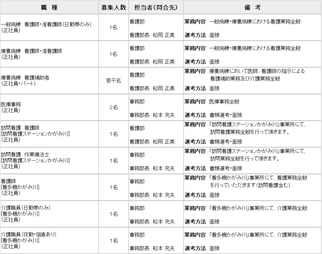 現在、下記の職種を募集中です。詳しくは各担当者までお問い合わせください。